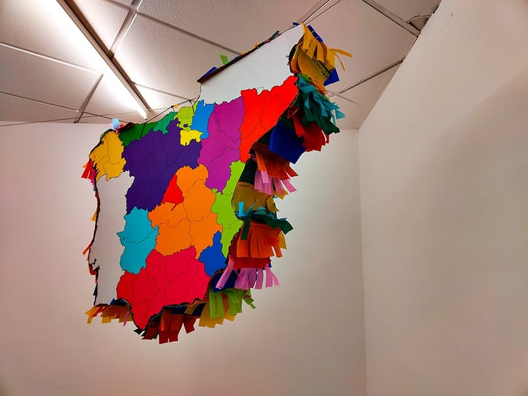 The installation is made up of 47 letters distributed on the wall and the piñata of Spain.