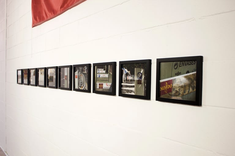 The action NO8DO (2018) reflects upon Seville as a city with few opportunities, that has become for young people a prison from which to flee. NO8DO is the motto and logo of Seville. This artwork – whose image appeared for the first time printed in number 8 of the magazine NOTON (2013, Seville) -, consists of the creation of a sticker with the modified city motto, where the 8 in the form the “skein” of Alfonso X is replaced by a barbed wire eight. The artist placed the stickers in specific locations in the Andalusian capital. In the gallery, the artist exhibits a large format flag with photographs that document the action displayed underneath.