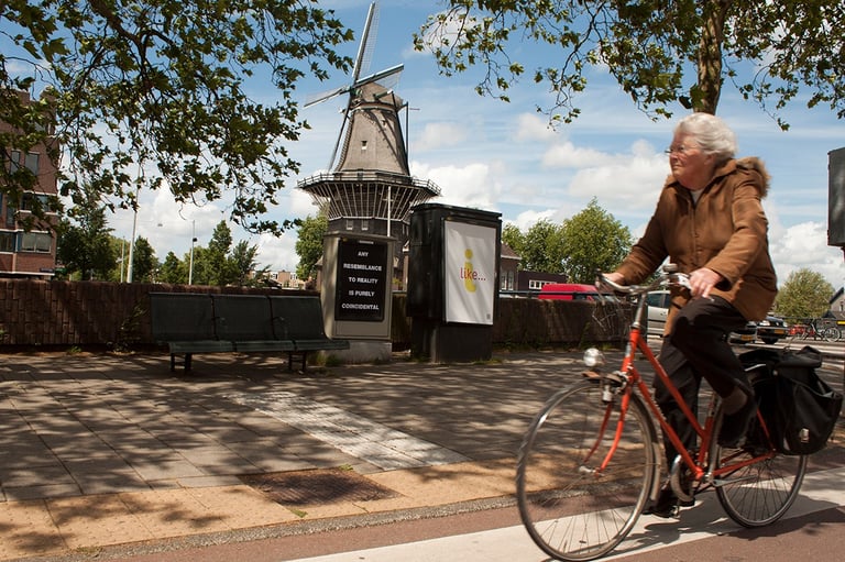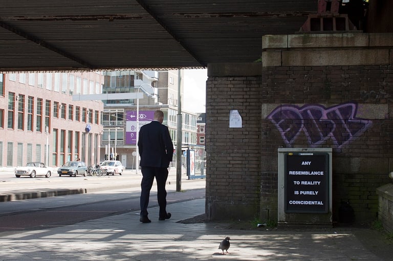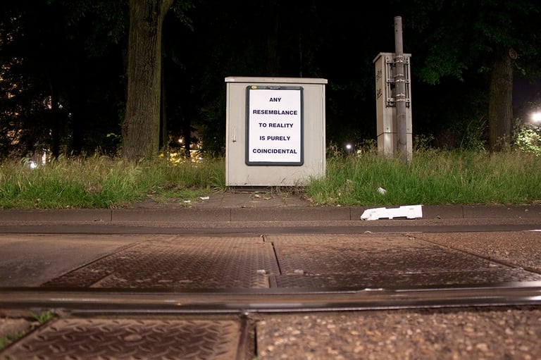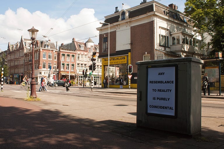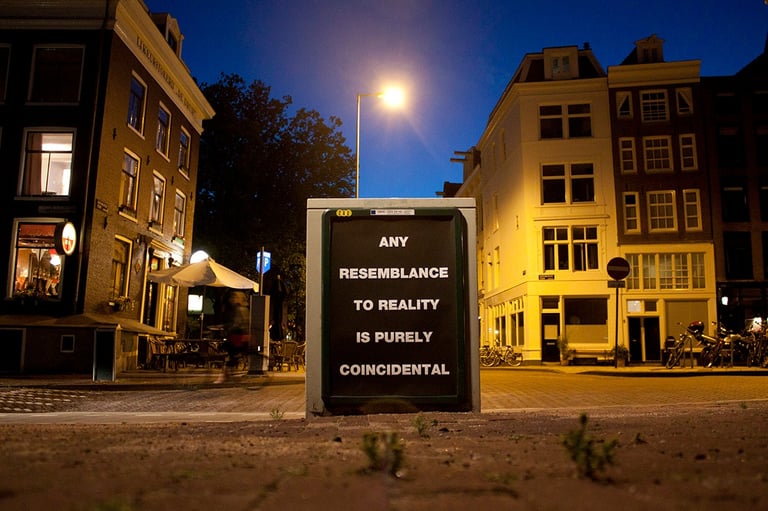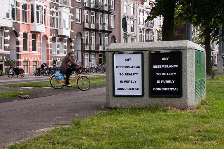 “Cualquier parecido con la realidad es pura coincidencia”. Intervención realizada sobre paneles publicitarios en Amsterdam".
