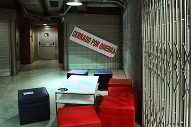 The project consisted of placing a sign on the door of the “Espacio F” exhibition hall, in the Fuencarral Market, Madrid's shopping center, with the phrase “closed for bankruptcy”. During the duration of the exhibition the room must remain closed.