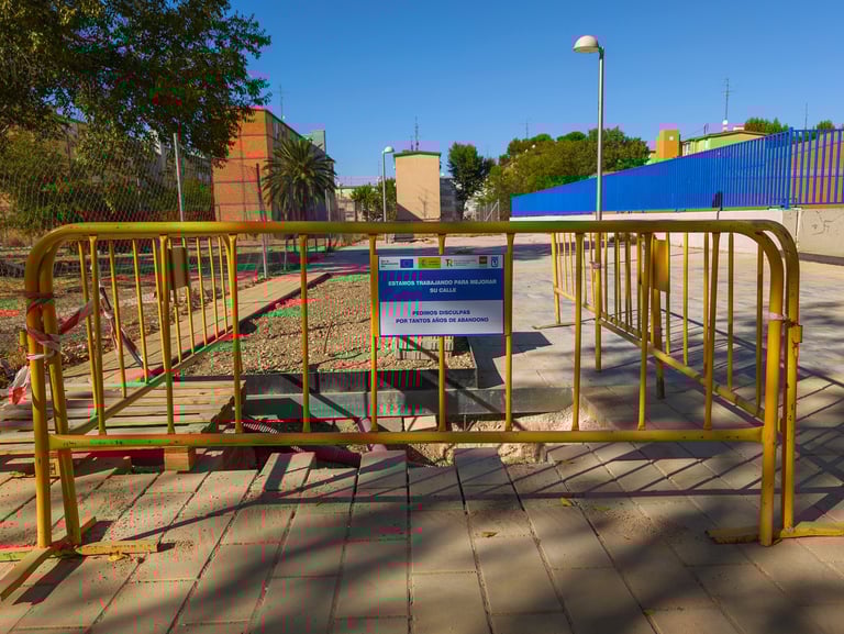 “Sorry for the inconvenience, we are working for your city,” a common slogan used by city councils to justify the disruptions caused by urban construction. This institutional language, which promises a better future in exchange for temporary inconvenience, is the starting point for this project that seeks to highlight the chronic neglect suffered by neighborhoods like San Cristóbal de los Ángeles.