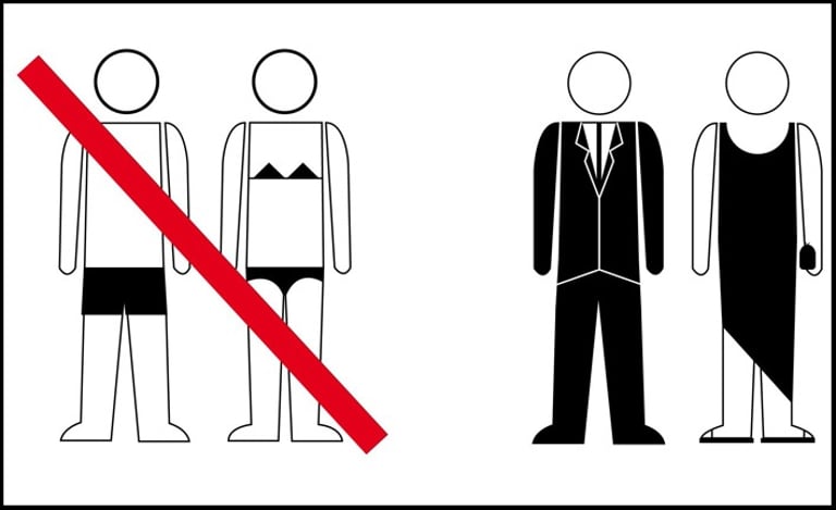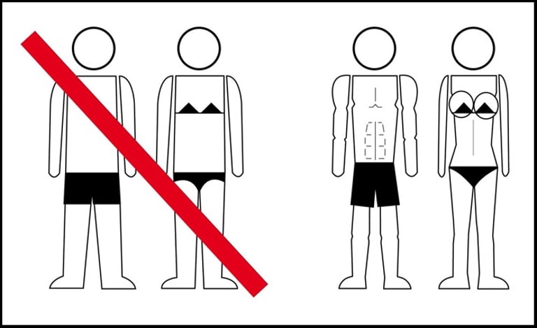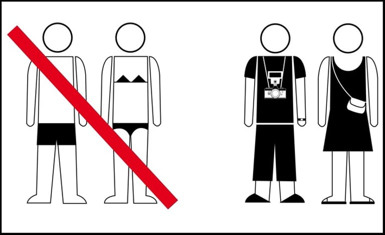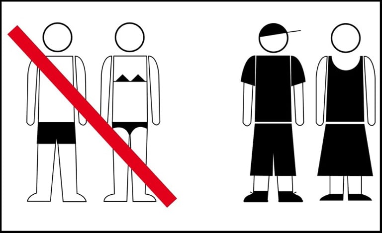 La medida tomada en favor del decoro en el vestir, parte de la elaboración de un cartel formado por dos pictogramas, una pareja en traje de baño tachado con una franja roja y otra pareja vestida adecuadamente para la ciudad. El cartel ha sido colocado en museos, bibliotecas, red de metro, autobuses, baños públicos, mercados, oficinas de información, etc.