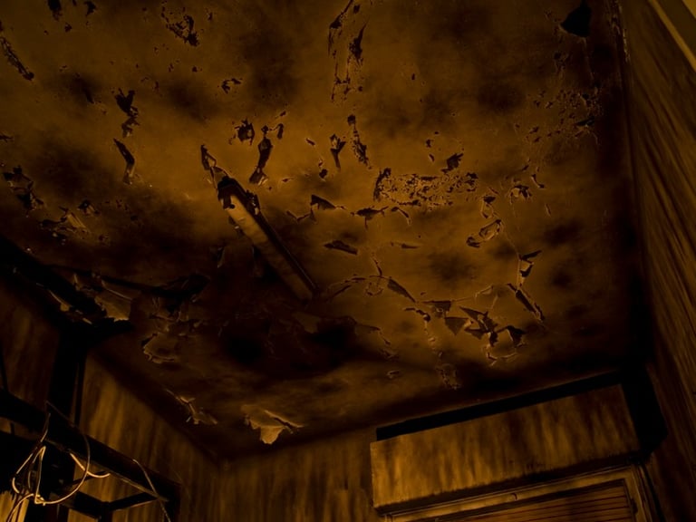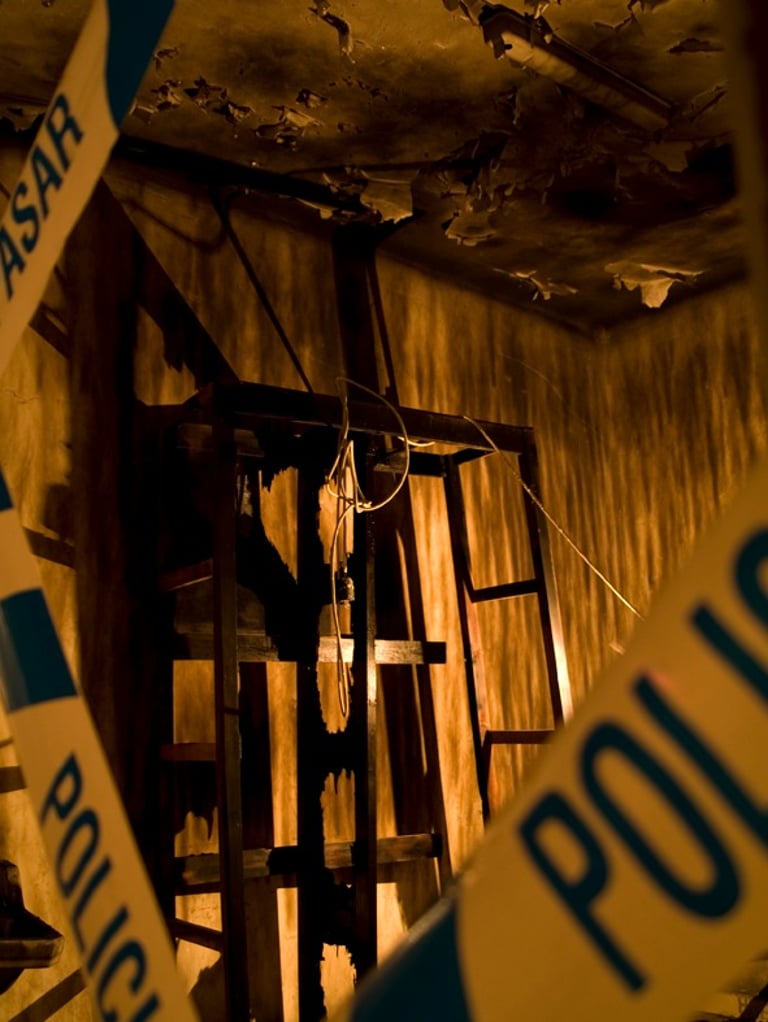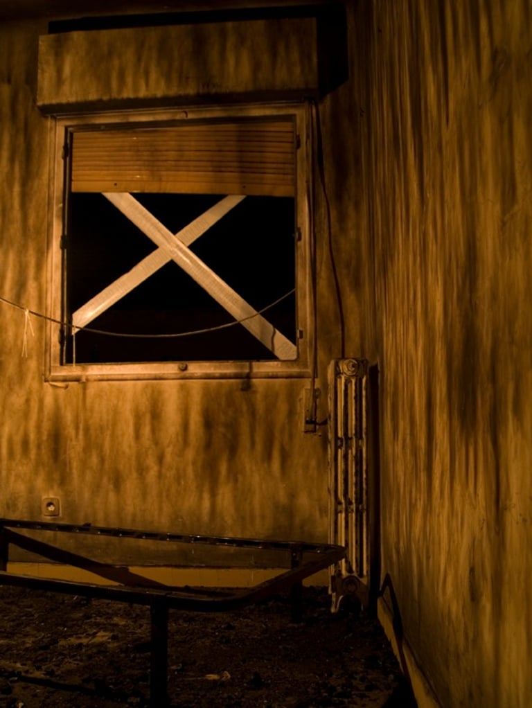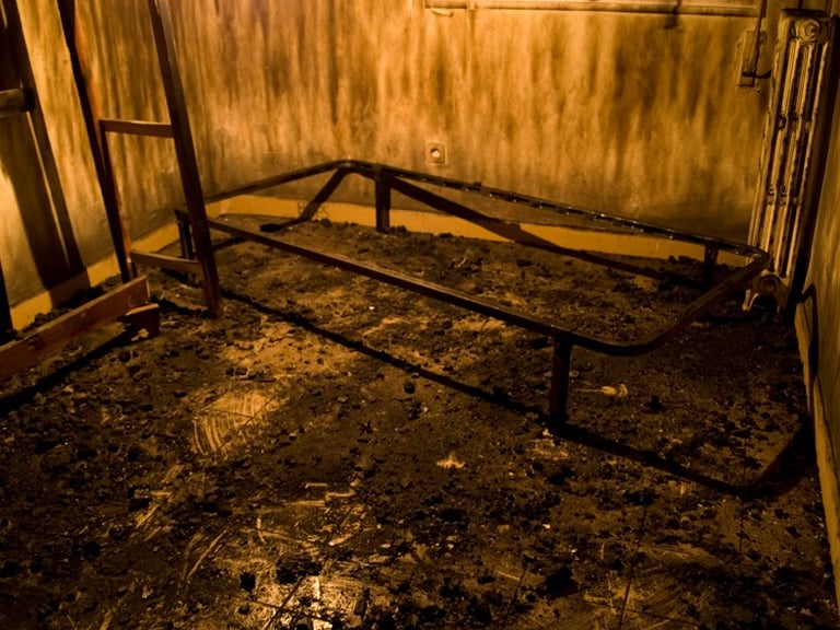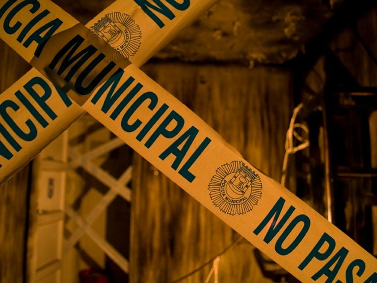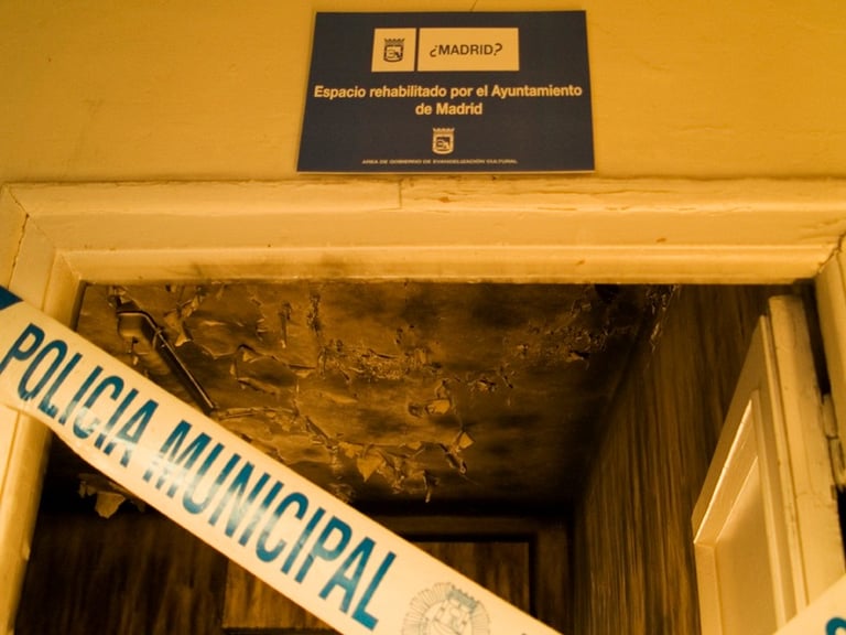 The action involved the burning of one of the rooms on the 5th floor, sealed with a police cordon to prevent the entry and a poster outlining "area rehabilitated by the city of Madrid. "