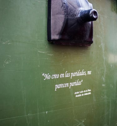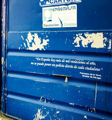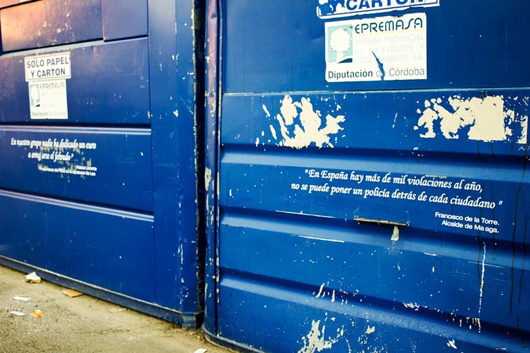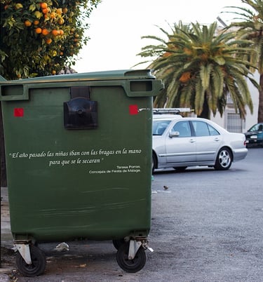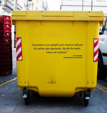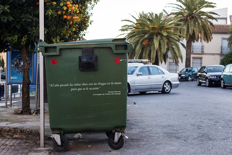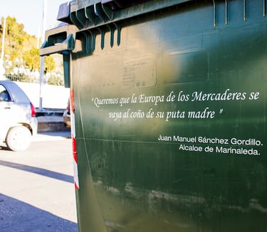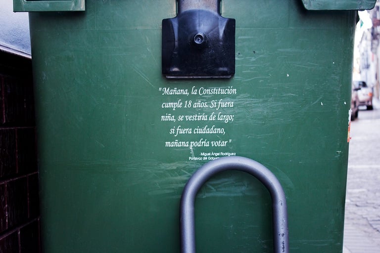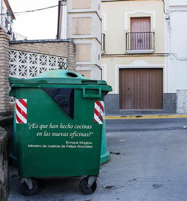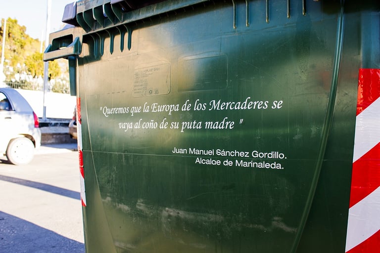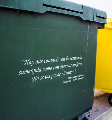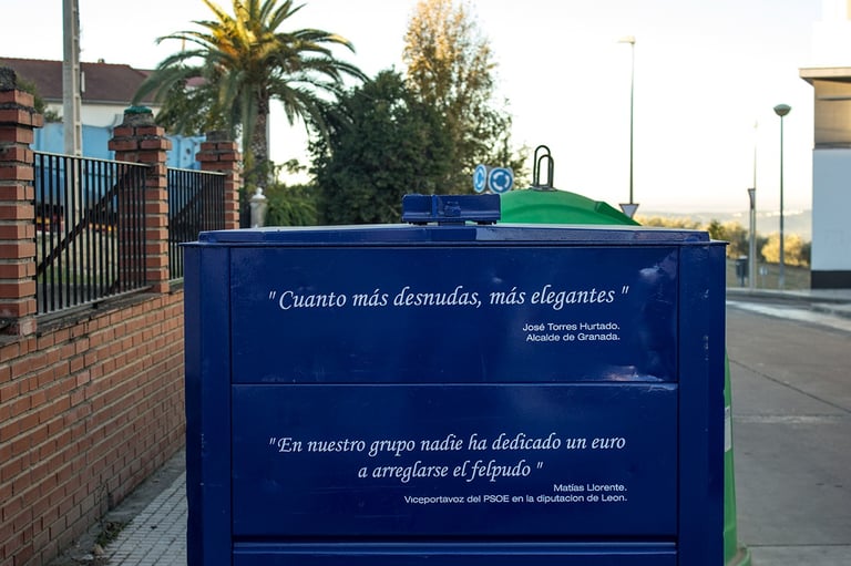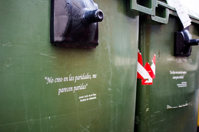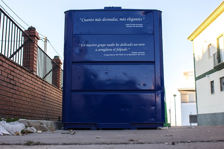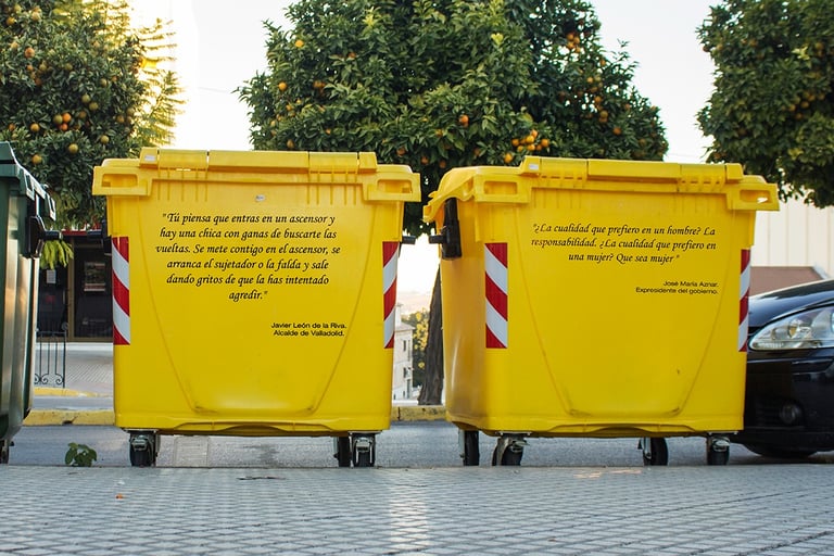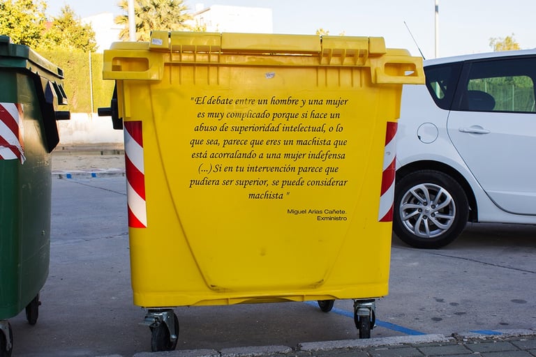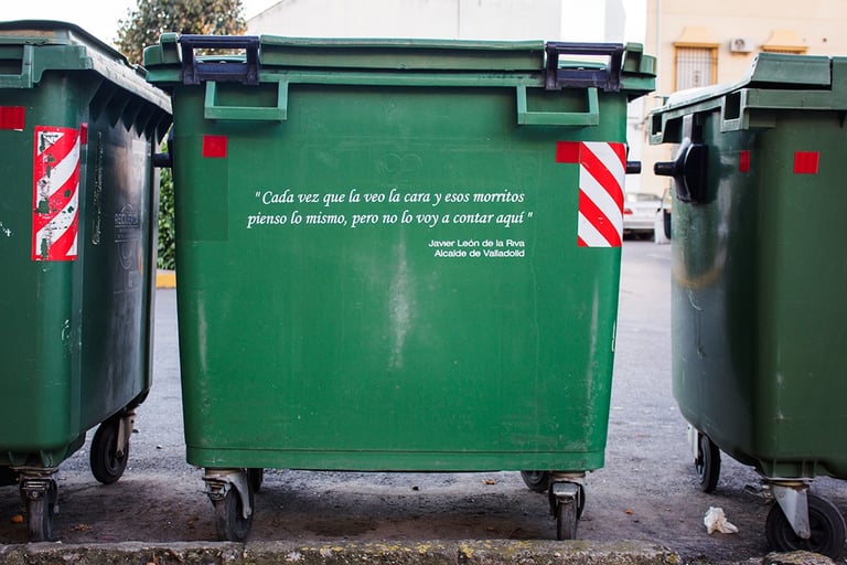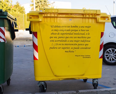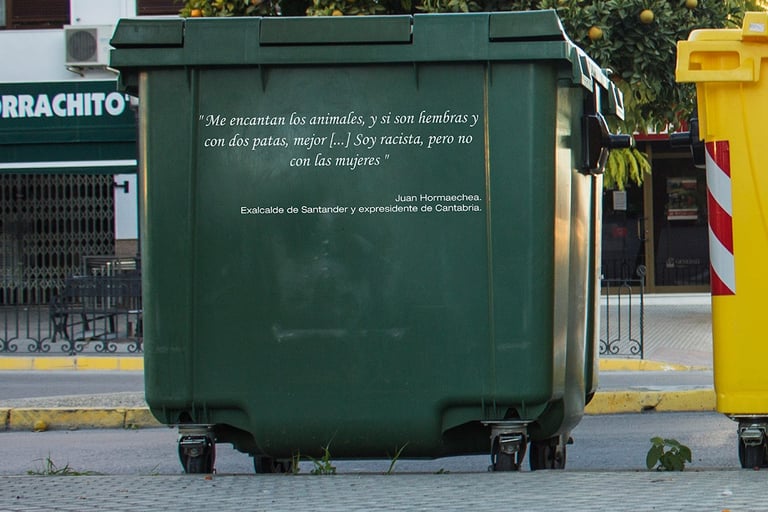 The action involves putting macho phrases of Spanish politicians in dumpsters.