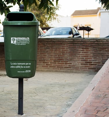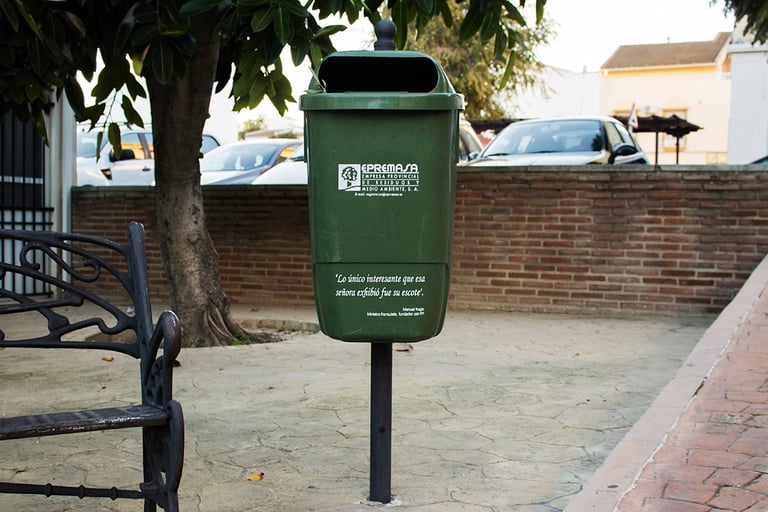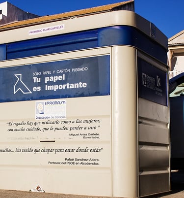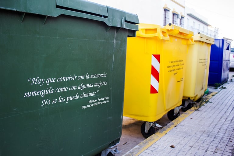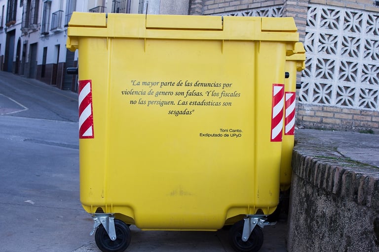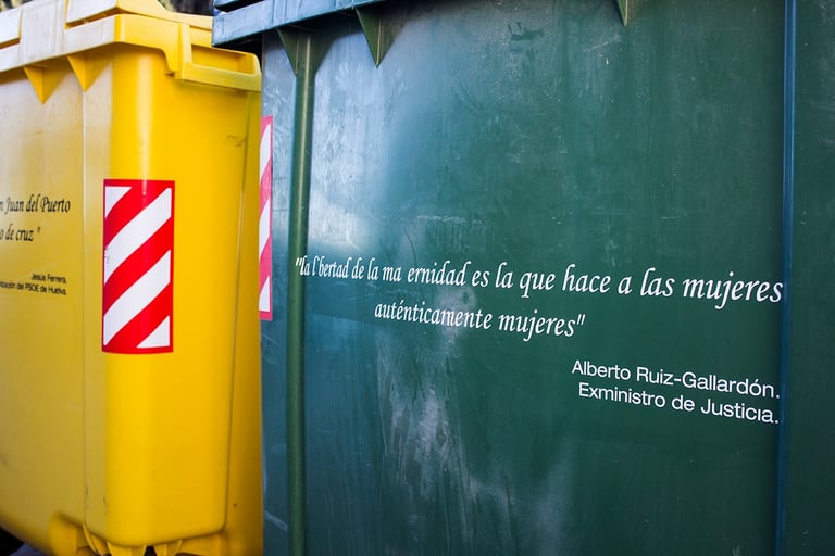 La acción consistió en poner frases machistas de políticos españoles en los contenedores de basura.