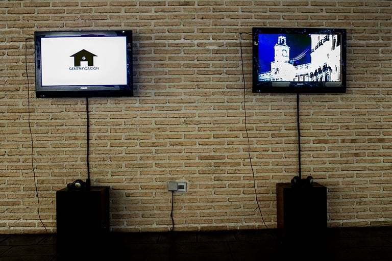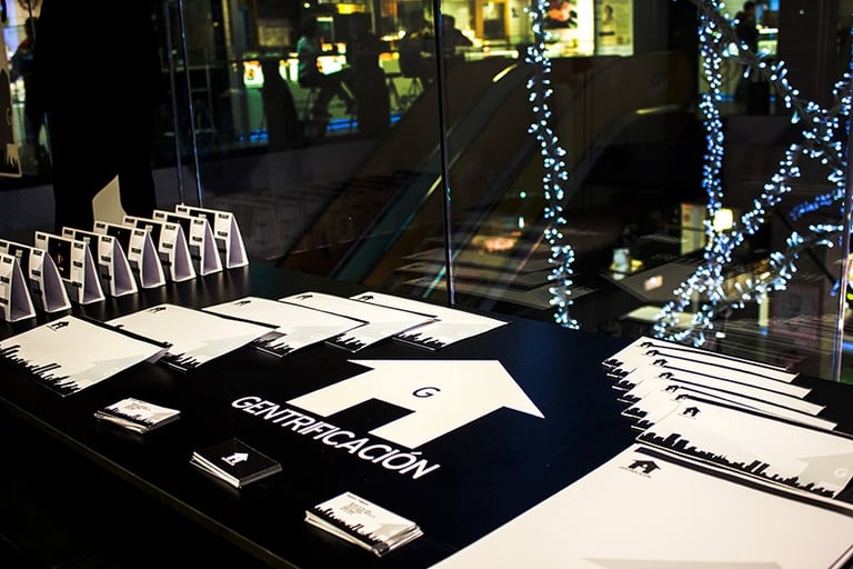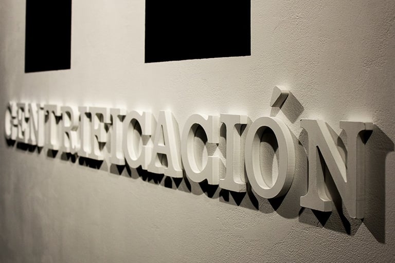 GENTRIFICACIÓN se presenta como marca, como agencia o como oficina que nos invita a reflexionar sobre problemáticas de nuestra iconosfera desde las artes visuales. DosJotas propone una nueva firma que es materializada a modo de contracampaña para, desde la ironía y desde la acción, cuestionar paradigmas de nuestro tiempo que se ven materializados en el arte reciente.