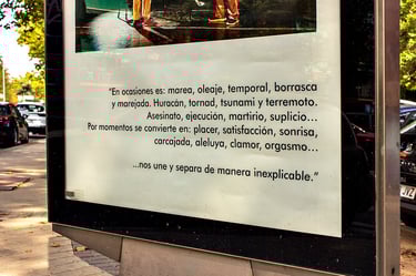 "Sometimes it is: tide, waves, storm, storm and storm surge. Hurricane, tornado, tsunami and earthquake. Murder, execution, martyrdom, torture ... At times it becomes: pleasure, satisfaction, smile, laugh, hallelujah, clamor, orgasm ... We celebrate it, mourn it, laugh it, hug it, or insult it in a fickle and whimsical way as it inexplicably unites and separates us."