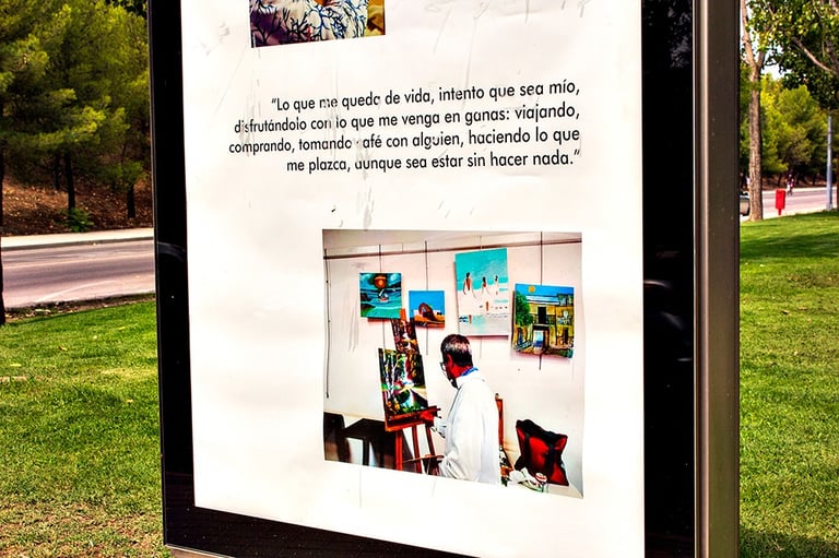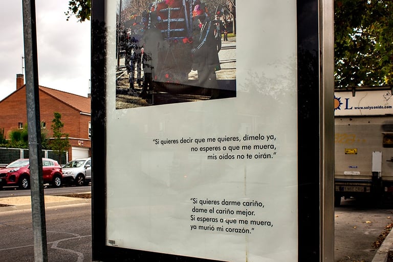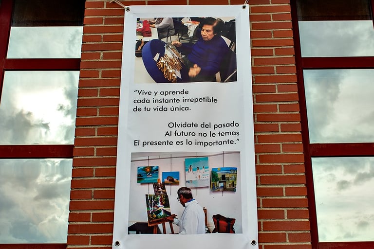 The project carried out in collaboration with the city council and the elderly centers of Rivas Vaciamadrid, through which the material provided by the elderly of Rivas was compiled to carry out the intervention that pays tribute to this group that gives so much and so much little receives.