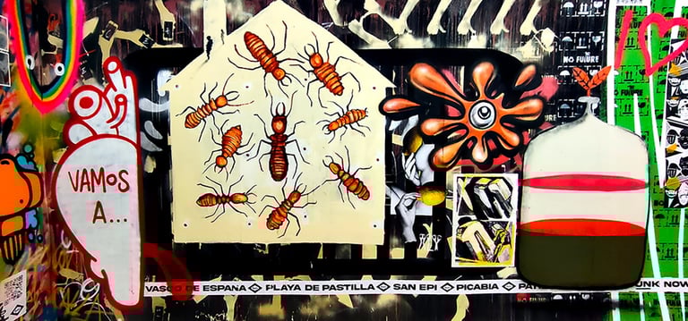-The third stage, after the inauguration and for several weeks, the invited artists intervened on the already painted surface, with total freedom, adding the value of their work to the surface in relation to the market price of each one of them, the price of the 50x50cm depended on the artist and the price he wanted to give him, always greater than €300. The artists did not know which spaces had been previously sold. They could choose the surface they wanted freely, always within the square meters distributed equally among all the participating artists.