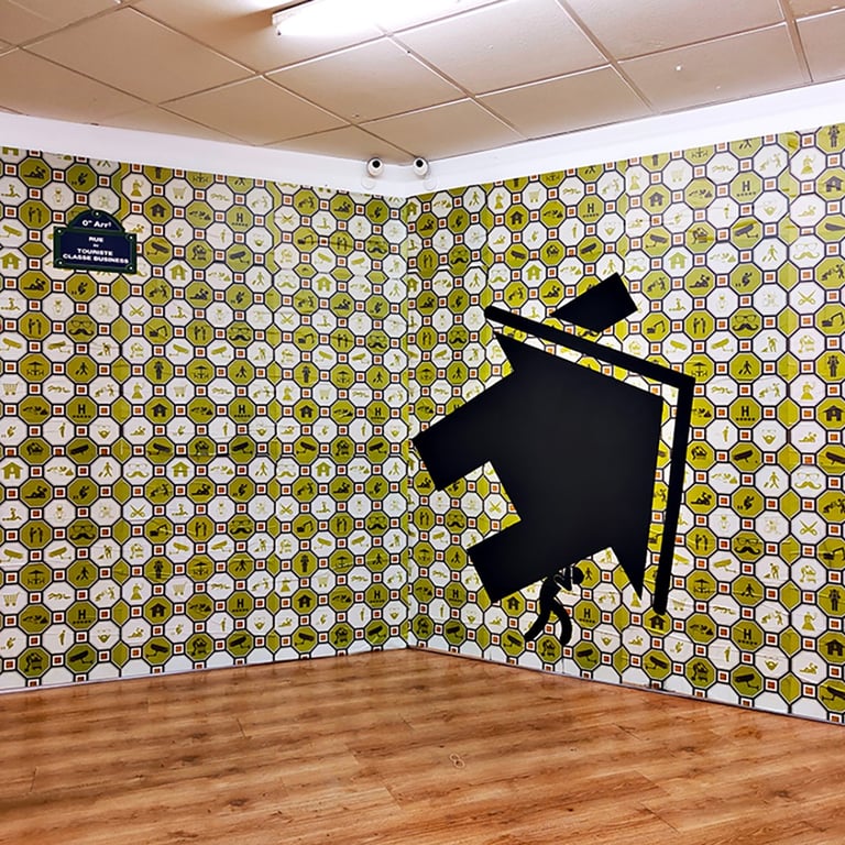 The installation recreated the walls of a contemporary city full of signatures, stencils, posters, stickers, simulating those semi-abandoned spaces where there is practically no space left without painting or intervening.