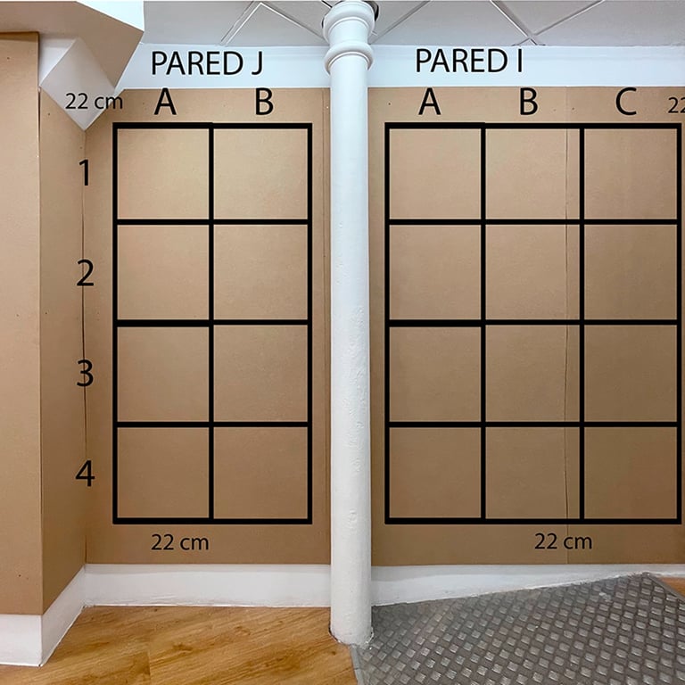 Espacios de 50x50 cm con las paredes intervenidas / Spaces of 50x50 cm with intervened walls