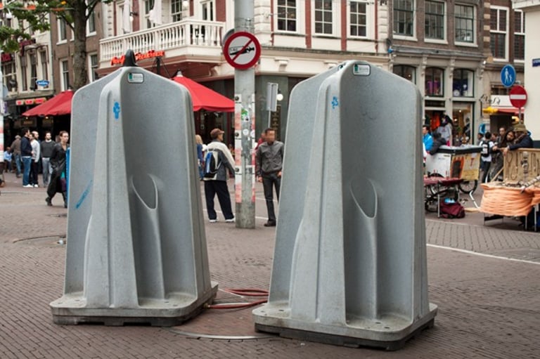En la ciudad de Amsterdam, sus bares y locales cobran por utilizar los baños, alrededor de 50 céntimos. Debido a esto, hay un gran número de servicios públicos gratuitos en la calle, curiosamente, la gran mayoría no señalan si son para uso de hombres, mujeres o mixtos, aunque debido a su estructura evidencian el uso exclusivo para hombres; esto ¿es debido a la facilidad anatómica del hombre para orinar en la calle y así evitar el orín en canales y esquinas de la ciudad? o ¿es una simple discriminación hacia las mujeres que se ven obligadas a pagar en un bar o esconderse entre dos coches para hacer sus necesidades?