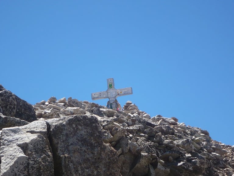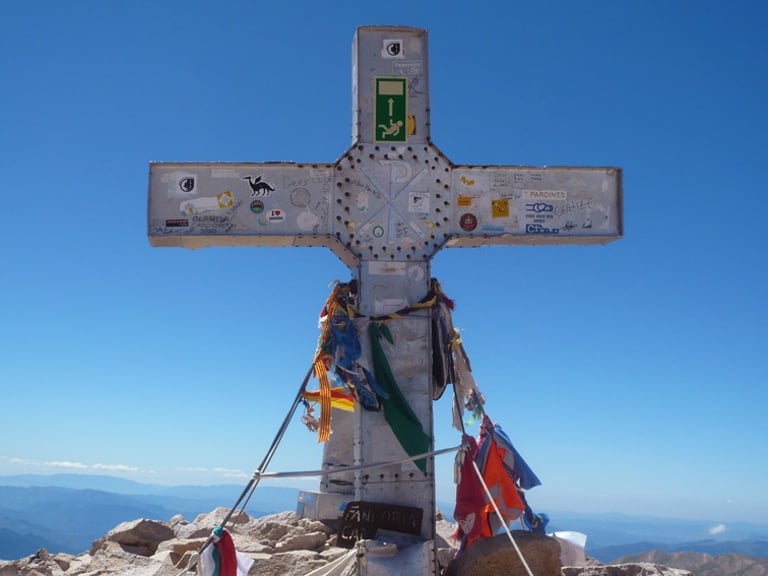 Señal puesta en el Aneto, pico más elevado de los Pirineos, con una altitud de 3.404 metros sobre el nivel del mar.